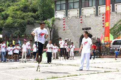 張家界高花燈亦稱高皇燈,是流行于永定沅古坪一帶富有民族特色的舞蹈。表演時,12人至24人不等。配有鑼、鈸、嗩吶、鼓等樂器。每人手中拿一盞紙扎燈籠,內(nèi)點蠟燭兩根,頂扎一木偶像,用五色紙剪成戲文故事如“八仙” 、“瓦崗寨”,“梁山英雄 ”之類。高花燈表演有一套程式,要求東起西落,進一個“半邊月”,出一個“月團圓”,舞個“太極圖”。亦可進民房表演,叫“愿燈”,多為祝福、還愿或為某家喜事湊趣。打吆喝、打口哨則只能到戶外表演,叫“眾燈”,是讓大家看的。其形式又分民燈、戰(zhàn)燈。前者表演 古代先民的遷徙、繁衍、勞動、生活;后者表演打仗破陣。隊形變化有“織籬笆”、滾柱頭”、“十八斗”、“螺螄轉(zhuǎn)頂”、“八卦陣”、“過天星”、“一字長蛇”等二十余種。如破“象棋盤陣”,主人插三十二根香,擺成棋盤陣,表演時,主人舉紅傘,玩燈者舉黑傘,從河道進,將眾“子”一一吃掉(即踩香),這是斗智的競賽。只見燈火如流星般穿插舞蹈 ,旁邊配以龍燈互舞(配龍玩燈,是高花燈的主要特點之一),那激起的鑼鼓聲、吆喝聲、口哨聲,掀起有節(jié)奏的聲浪,熱烈而歡快。 張家界高花燈發(fā)祥于張家界市永定區(qū)沅古坪鎮(zhèn)等地區(qū),與沅古坪地區(qū)接壤的沅陵、桃源、慈利等周邊區(qū)縣也有少量玩高花燈的習(xí)慣。 高花燈的燈代表著光明幸福,12個燈表示12個月,月月平安無事。每年春節(jié),每個村寨都要操練一班高花燈,辭舊迎新。制作時,藝人用竹篾和紙扎糊成12或24個燈籠,在燈籠下加上一個長柄燈托,并在燈籠上扎上五顏六色的“故事”,如“八仙”、“耿氏送子”等。夜晚,在燈籠里點上木油臘燭,一人舉一個燈籠,邊舞邊組成多種隊形。一眼望去,流光閃爍,尤如銀河戲舞。 張家界高花燈不但為本鄉(xiāng)本土的觀眾所喜愛,而且受到海內(nèi)外朋友及國際友人的高度贊賞。因為它是中國古老的民間舞蹈代表,它以自成體系的記譜方法,延繼著中國舞蹈的血脈,以其悠久的舞蹈歷史和多元文化特征,被舞蹈界認(rèn)為是“中國舞蹈歷史上的活化石”,極具學(xué)術(shù)研究價值和很高的審美價值。已列入全省第一批非物質(zhì)文化遺產(chǎn)保護名錄。 高花燈相傳起源于東漢章帝初年,時“ 中蠻”覃兒健在澧水中下游舉義反漢,與漢軍“戰(zhàn)于洪下”(相傳為今大庸紅土坪,待考),洪下“蠻人”用火 把跳舞為義軍吶喊助戰(zhàn),終因漢軍勢眾,覃兒健與義軍全部戰(zhàn)死(至今留下懸鼓坪、御甲埡、扎營山、烽火臺等古戰(zhàn)場遺跡)。以后,當(dāng)?shù)匦U人每年都必在過 后年(從正月初一至元宵節(jié))打火把集會跳舞, 栽“ 陽樁”(土話栽跟頭),表示對“洪下之戰(zhàn)”的紀(jì)念 。久而久之,火把進化成燈籠和扎人物事故,表演也 有一定規(guī)矩。至今,這種舞蹈藝術(shù)還保留著古老、原始、粗獷、豪放、悲壯的特色。 |