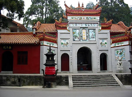 在岳麓山半腰,系晉初古寺,是佛教人湘最早的一所大寺。明神宗時(shí) 更名為萬壽寺,民國初年復(fù)名,古麓山專。唐代大詩人杜甫曾用“寺門高開 洞庭野,殿腳插入赤沙湖”的詩句稱頌殿字宏大。大雄寶殿等主要建筑,于 1944年被炸毀,僅存山門和觀音閣,現(xiàn)已修整一新.山門上有“古麓出寺” 的橫額,兩旁為“漢魏最初名勝,湖湘第一道場"對聯(lián),門外古楓參天,濃 蔭覆蓋,門內(nèi)園圃百花爭艷。觀音閣為磚木結(jié)構(gòu),1955年曾加以修葺,1980 年再次修整恢復(fù)原貌,并在廳堂神龕中置觀音像。閻內(nèi)常舉辦小型書畫展 覽。觀音閣前有兩株羅漢松,左邊一株是六朝遺跡,稱“六朝松",樹 齡在1700年以上, 是岳麓山植物界的"元老", 老干新枝,紛繁翁 郁,彌足珍貴;右邊一株于清代被巨風(fēng)拔去并被清代人補(bǔ)植。兩棵古松 并峙于閣前,游人樹下經(jīng)過,若入關(guān)隘,故有“關(guān)松"之稱。