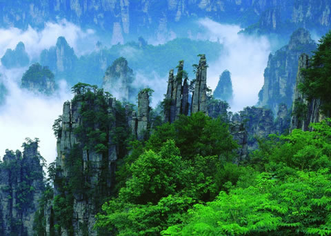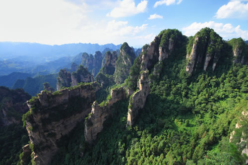 下 午: 中餐后游玩世界自然遺產(chǎn)的核心---袁家界景區(qū)(包含電影《阿凡達(dá)》中“哈利路亞山”原型“乾坤柱”、天下第一橋、九天玄梯、乾坤柱、連心橋、中韓友誼亭、神龜問天、迷魂臺等景點) 。袁家界,是張家界森林公園山頂觀景最為奇特壯觀景區(qū)之一,勝于黃石寨和天子山景區(qū)…之后便乘坐大約20分鐘的環(huán)保車可到大觀臺住宿地。