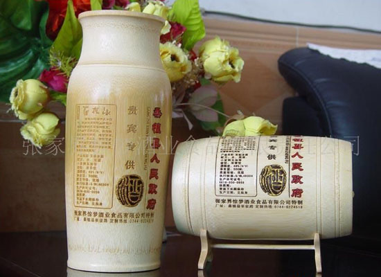 竹筒酒 張家界驚夢酒業(yè)食品有限公司是一家專門從事竹筒酒系列和竹工藝品生產的張家界市名星企業(yè),湖南省科技型民營企業(yè)。其系列竹筒酒已通過國際質量體系認證和中華人民共和國進出口資格認證。并榮獲湖南省首屆農博會金獎。2002年、2003年被評為張家界十大優(yōu)質旅游產品。 其產品具有幾大特色: 1、實用新型包裝:竹筒內嵌有紫砂瓶、玻瓶和瓷瓶,使酒能長期保存,目前是國內唯一解決了竹筒直接裝酒滲漏的企業(yè),并享有專利保護權。 2、收藏紀念:純手工彩繪的張家界風光及民俗風情畫,是本產品成為收藏紀念品的原由之一。 3、價位合理:根據竹筒制造的精益和不同檔次的酒質,產品分為高、中、低三擋。 |