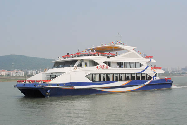 九洲龍驤豪華游船船長42米,寬12米,擁有280個客位,游輪采用了國際先進的造船技術(shù),流線型的外觀設(shè)計、造型典雅時尚。船身共分為3層,可滿足游客餐飲、觀光、娛樂、會務(wù)等多種需求。