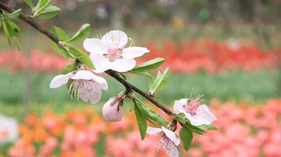 園內(nèi)的桃花開得正艷,郁金香和桃花在一起的地方更是美上加美,成為游客拍攝最多的地方。由于游客眾多,經(jīng)常有人踏入花田中拍照,這可忙壞了現(xiàn)成巡邏的工作人員,筆者在此呼吁大家愛花更護(hù)花,文明欣賞。