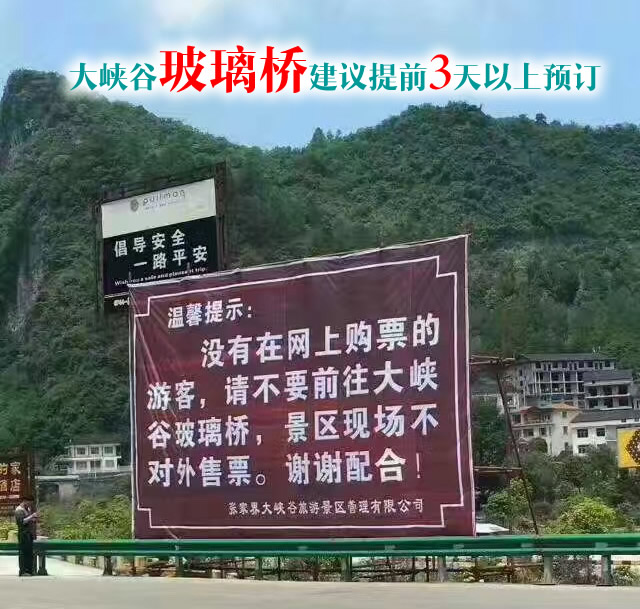 4、沒有在網(wǎng)上購票的游客,請(qǐng)不要前往大峽谷玻璃橋,景區(qū)現(xiàn)場(chǎng)不對(duì)外售票。