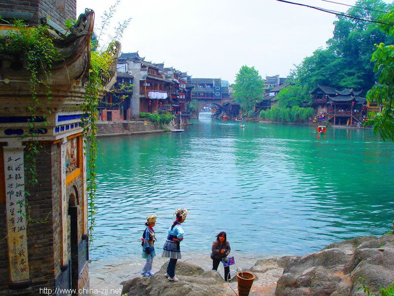 【鳳凰古城位于沱江之畔、群山環(huán)抱、關(guān)隘雄奇、碧綠的沱江依著城墻緩緩流淌,疊翠的南華山麓倒映江中,江中漁舟游船數(shù)點,山間暮鼓晨鐘兼鳴,懸崖上的吊腳樓輕煙裊裊,碼頭邊的浣紗姑笑聲朗朗,兩岸已有數(shù)百年歷史的吊腳樓更是別有一番風(fēng)味;順水而下穿過虹橋一幅江南水鄉(xiāng)的畫面便展現(xiàn)于眼前--萬壽宮、萬名塔、奪翠樓……一種遠離塵世的感覺悠然而生;鳳凰--猶如“一幅濃墨淺彩的中國山水畫”】